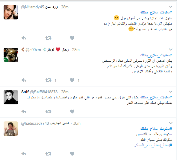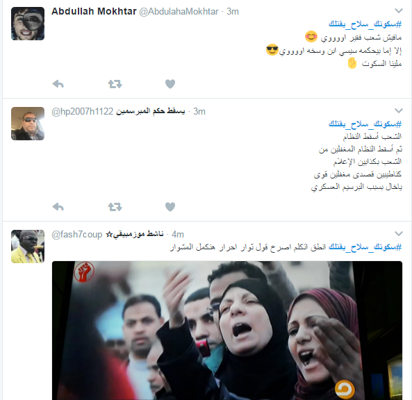 “سكوتك سلاح هيقتلك” وسم يتصدر “تويتر” ومغردون: صمتك ضياع للبلد