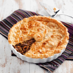 توضع العجينة الأكبر في قعر الصينية المغلفة بالزبدة ويتم التأكد من أنها تغطي الأطراف كلها. باستخدام شوكة، تُثقب العجينة وتُملأ الصينية بمزيج اللحم البارد. تُغطى الصينية بالعجينة الأصغر وتوضع في البراد لفترة لا تقلّ عن نصف الساعة حتى تصبح قاسية.