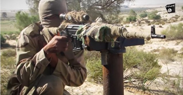 ويظهر في أكثر من مشهد قناصة تابعون لتنظيم الدولة يتمركزون من نقاط بعيدة عن أهدافهم، بينما تظهر مشاهد أخرى مسلحين يتسللون لمسافات قريبة من نقاط تمركز الجيش المصري.