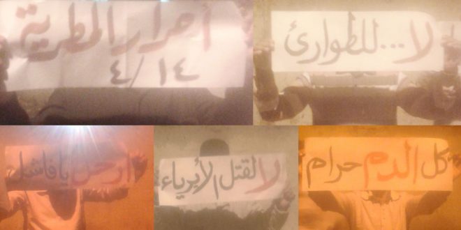 رفع أحرار المطرية شعار لا لقتل الأبر ياء ولا للطوارى لإعلان رفضهم التام لطوارىء السيسى ضمن فعاليات جمعة #تسقط_عصابة_الانقلاب .