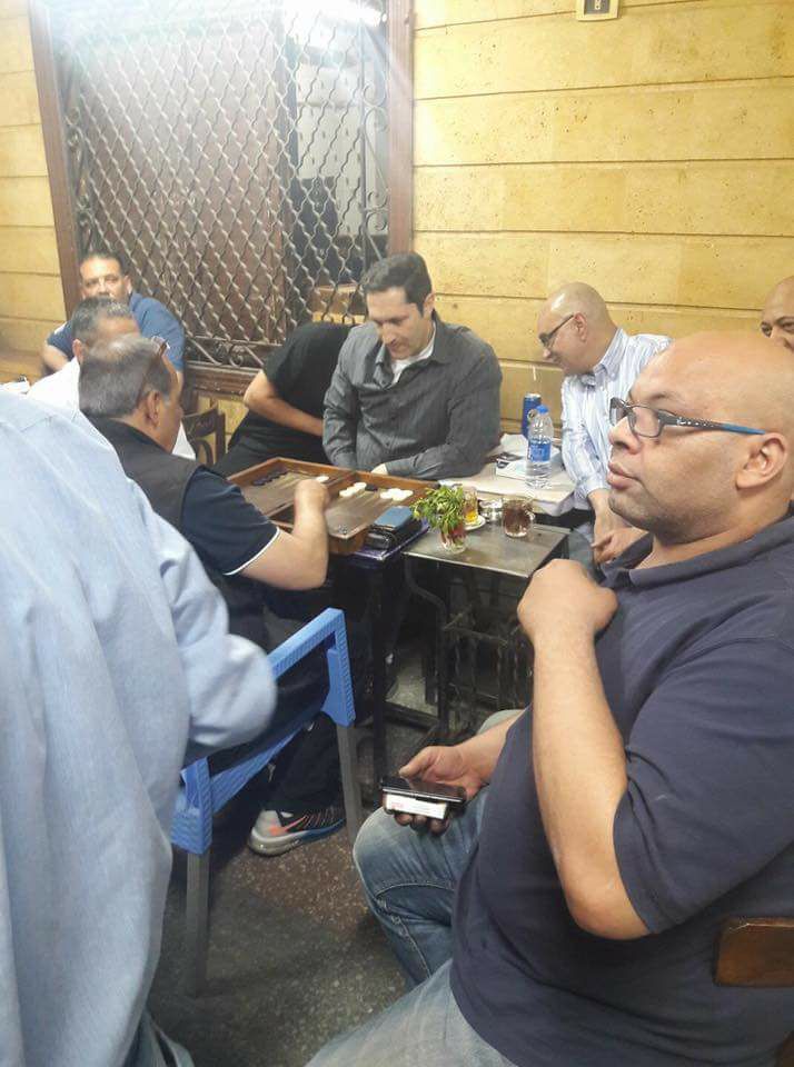 وظهر علاء مبارك، في الصور وهو يجلس مع بعض الأشخاص، ويلعب “الطاولة”، ويتناول مشروب الشاي. ويلتقط صور السيلفي مع بعض المواطنين الذين تزاحموا على المقهى بسبب ظهوره هناك.