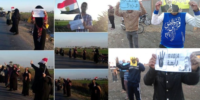 حيث نظم ثوار السنبلاوين، سلسلة بشرية مناهضة للانقلاب، على الطريق الزراعي، ردد المشاركون فيها هتافات ” يسقط يسقط حكم العسكر، إرحل ياسيسي، الشعب يريد إسقاط النظام “، وشاركت فيها حركة نساء ضد الانقلاب.