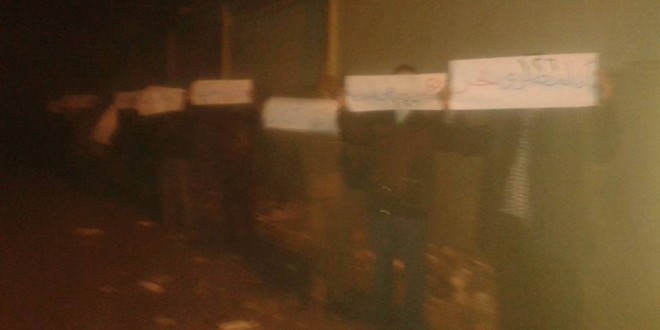 نظم رافضى الانقلاب بالمطرية دقهلية وقفة ليلية فى ذكرى ثورة 25 يناير للمطالبة برحيل حكم العسكر والسيسى الفاشل ، وعودة الشرعيةوالحرية للمعتقلين والقصاص لدماء الشهداء