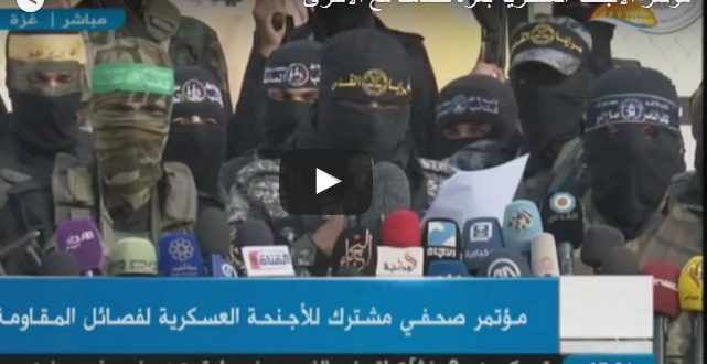 وأضافت الأجنحة العسكرية- في مؤتمر صحفي تم عقده في ساحة السرايا بغزة- “نرقب عن كثب ما يتعرض له الأسرى في سجون الاحتلال من ظلم وقهر وعدوان، وما يحاول العدو فرضه عليهم من تضييق وإذلال”.