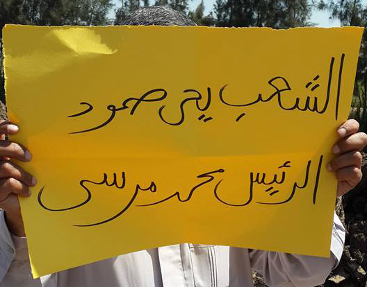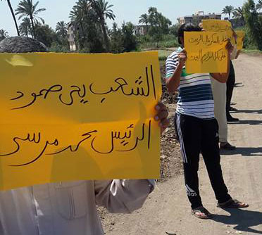 رفع شباب ضد الانقلاب بالعزيزة لافتات تهنئة للرئيس الشرعى الدكتور محمد مرسى .