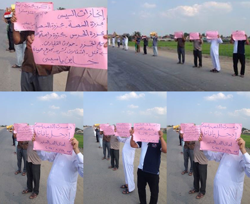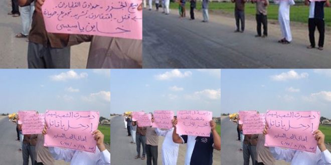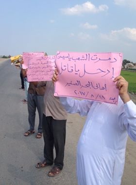 رفع أهالى البحر الصغير بالمنزلة لافتات بالمجازر التى ارتكبها السفاخ الخائن عبدالفتاح وطالبوا برحيله قبل تدمير الشعب وذلك خلال فعاليات جمعة صامدون .