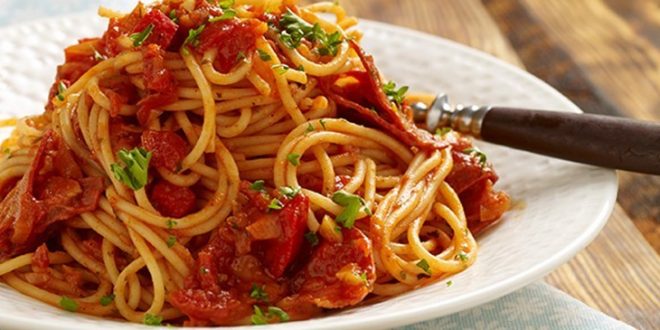 – تخلط المكرونة مع الصلصة ثم توضع في صحن التقديم و تقدم ساخنة