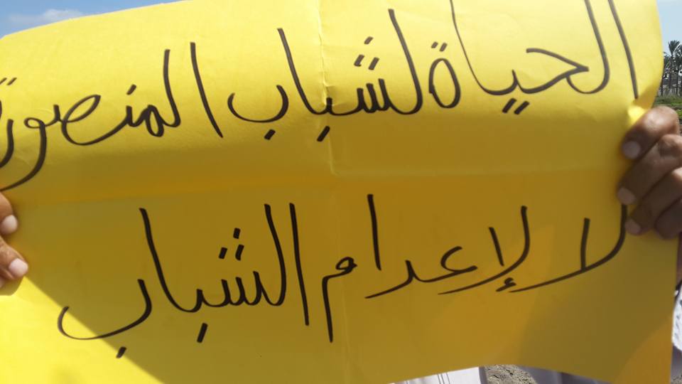 كما طالبوا بوقف أحكام الاعدام الصادرة بحق شباب المنصورة ومنهم باسم الخريبى ابن مدينة المنزلة