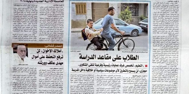 في ملف التعليم .. تقول الأهرام إن “11” محافظة تبدأ العام الدراسى.. تفعيل الغياب الالكترونى.. ولا حديث عن السياسة بالمدارس.. تنبيهات بتسليم الكتب والتشديد على النظافة والوجبات المدرسية.. 70 مدرسة مغلقة بسوهاج.