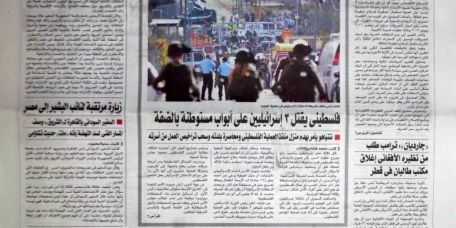 والحكومة الفلسطينية وفقا للمصري اليوم تشكل لجانًا لتسلم معابر ودوائر غزة.. فلسطينى يقتل 3 جنود إسرائيليين فى مستوطنة بالقدس.. وزيارة مرتقبة لنائب البشير إلى مصر وفقا للشروق.. السفير السودانى بالقاهرة: وصف المسار الفنى لسد النهضة بأنه “مات” حديث تشاؤمى.
