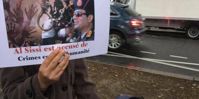 تداول ناشطون عبر “فيس بوك”، اليوم الثلاثاء، عددًا من الصور واللافتات تم وضعها بالعاصمة الفرنسية باريس، رفضًا للزيارة التي يقوم بها المنقلب عبد الفتاح السيسي لفرنسا.