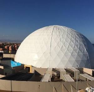 كما أن القبة تعتبر أكبر قبة عملاقة في الشرق الأوسط ذات لون أبيض شفاف، وتعلو قاعة احتفالات على مساحة 5 آلاف متر مربع، كما تطل القبة الزجاجية على البحر.
