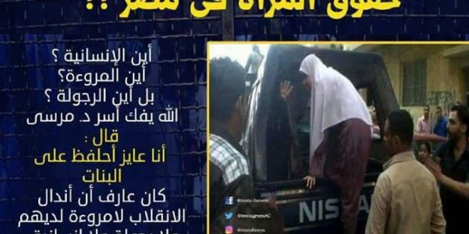 ويشير الإنفوجراف إلى مقولة الرئيس محمد مرسى المشهورة: “أنا عاوز أحافظ على البنات” وكيف أن النظام الانقلابى تخلى عن المروءة والرجولة حتى الانسانية.. حينما اقترف مثل هذه الجرائم بحق المرأة المصرية.