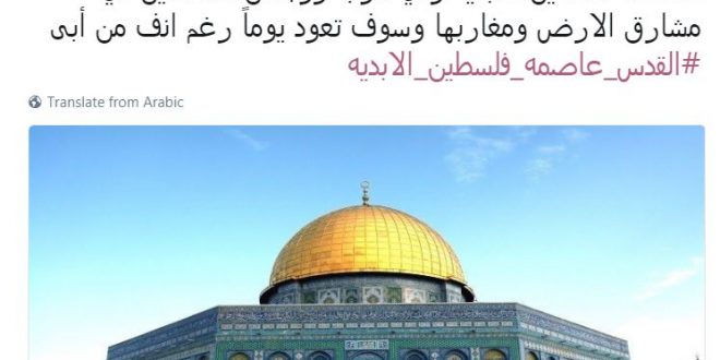 فقال حساب باسم ولد الديرة: “عاصمة فلسطين الأبدية وفى قلوب ووجدان المسلمين فى مشارق الأرض ومغاربها وسوف تعود يوماً رغم أنف من أبى”.