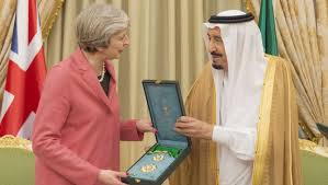 ومنذ انتخابها رئيسة للوزراء، تلقَّت تيريزا ماي نفسها عدة هدايا من السعوديين، من بينها حلية، وساعة، ووسام. ومن المُحتَمَل أن يكون الوسام على علاقة بتقليد ماي وسام الملك عبدالعزيز آل سعود.