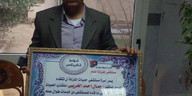 ودعت أسرة مستشفى الحميات بالمنزلة الدكتور جمال أحمد الخريبى المدير السابق لها ، وقد تولى الإدارة خلفه الدكتور محمد على غزالة .