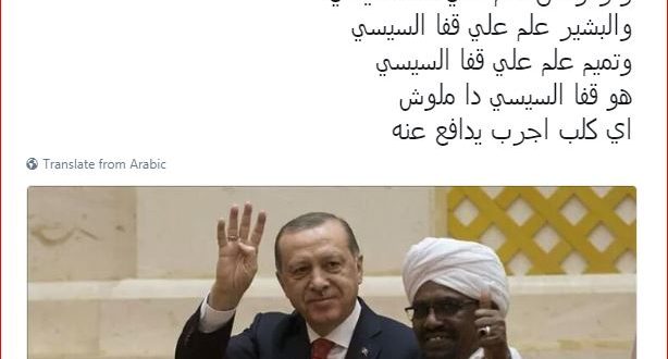وعلق “شاعر فلسطين” ساخرا، “#اثيوبيا_علمت_عالسيسي والجزيرة علمت علي قفا السيسي واردوغان علم علي قفا السيسي، والبشير علم علي قفا السيسي وتميم علم علي قفا السيسي وهو قفا السيسي دا ملوش اي كلب اجرب يدافع عنه
