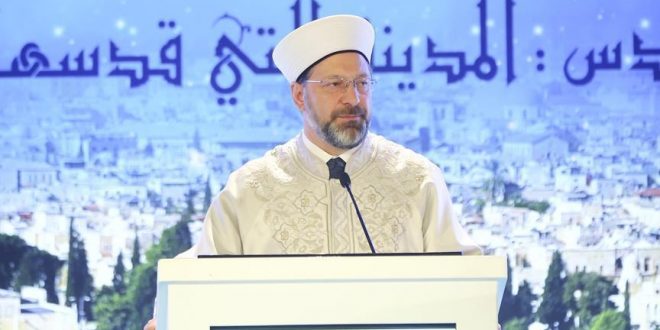 قال رئيس الشؤون الدينية التركية علي أرباش، اليوم الثلاثاء، إنه “ينبغي على العالم الإسلامي اعتبار القدس، قضية مشتركة لجميع المسلمين وليس للفلسطينيين أوالعرب فقط، والتأكيد بكل المناسبات على حقيقة أن القدس هي العاصمة الأبدية لفلسطين”.