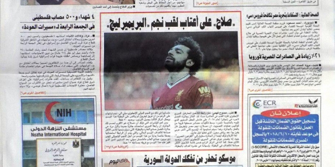 “الأهرام”: 4 شهداء و500 مصاب فلسطينى فى الجمعة الرابعة لـ”مسيرات العودة”. “الشروق”: الفلسطينيون يواصلون “مسيرات العودة”.. وإسرائيل تلوح باغتيال قادة “حماس”.. شهيدان وعشرات المصابين فى مواجهات مع قوات الاحتلال قرب حدود غزة. “الوطن”: رصاص الاحتلال الإسرائيلى يسقط شهيدين ويصيب 126 فلسطينيًا.. عصابات يهودبة تقتحم قرى فلسطينية وتهدد سكانها بالقتل.. ورئيس رومانيا: لا نية لنقل سفارتنا إلى القدس.