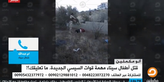 وأضافت أم عبد الله- في مداخلة هاتفية لبرنامج “ألو مكملين” على قناة “مكملين”- أن أصوات أهالي سيناء لا تصل إلى الإعلام، وأن نظام قائد الانقلاب عبد الفتاح السيسي يستخدم شماعة الإرهاب لتهجير أهالي سيناء.
