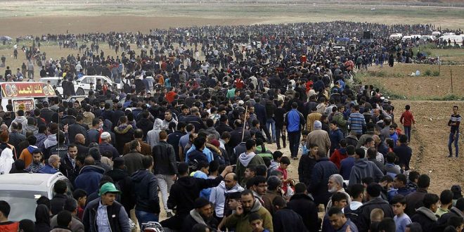 وبدأت مسيرات العودة، في 30 مارس الماضي؛ حيث يتجمهر آلاف الفلسطينيين، في مواقع عدة قرب السياج الفاصل بين القطاع وإسرائيل، للمطالبة بعودة اللاجئين الفلسطينيين إلى قراهم ومدنهم التي هجروا منها عام 1948.