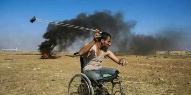 دأب الشاب فادي أبو صلاح بنصف جسد على كرسي متحرك، على الوجود اليومي في مخيمات العودة شرق مدينة خانيونس جنوب قطاع غزة، متحديا إعاقته الجسدية ومؤكدا حقه في العودة إلى الأراضي الفلسطينية. إلى أن ارتقى أمس على خطوط التماس بين غزة ودولة الاحتلال.