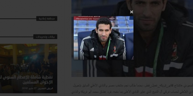 أطلق الذباب الإلكتروني السعودي هاشتاج #ابو_تريكه_عميل_قطر، بعدما طالب نجم منتخب مصر والنادي الأهلي السابق بتحويل الأموال الموجودة لدى النادي اللأهلي لحساب تركي آل الشيخ الذي عاير النادي الأهلى بما دفعه، فرد عشاق محمد أبو تريكة والنادي الأهلي هاشتاج #تريكة_اسطورة_عربية سحق النشطاء والمواطنون الهاشتاج السعودي فقط في 10 دقائق حيث حقق في العشر دقائق الأولى نحو 42 ألف تغريدة.