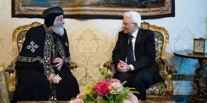 اللقاء الذي تطرق إلى قضايا الإرهاب، والسلام افتتحه الرئيس الإيطالي بتثمين دور البابا تواضروس، والكنيسة القبطية، لافتًا إلى أن صوتها مسموع في العالم.