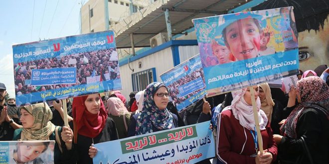وأتت المظاهرة في أعقاب اجتماع اتحاد الموظفين المحليين في غزة، أمس الأحد، مع مدير عمليات “أونروا” بغزة ماتياس شيمالي، والذي انتهى بنتائج كارثية، حسب بيان صدر عن العاملين بالوكالة.