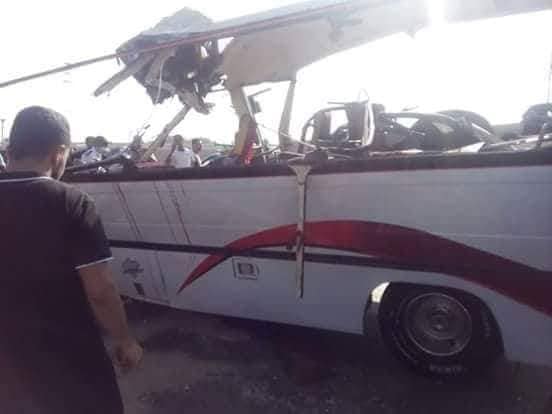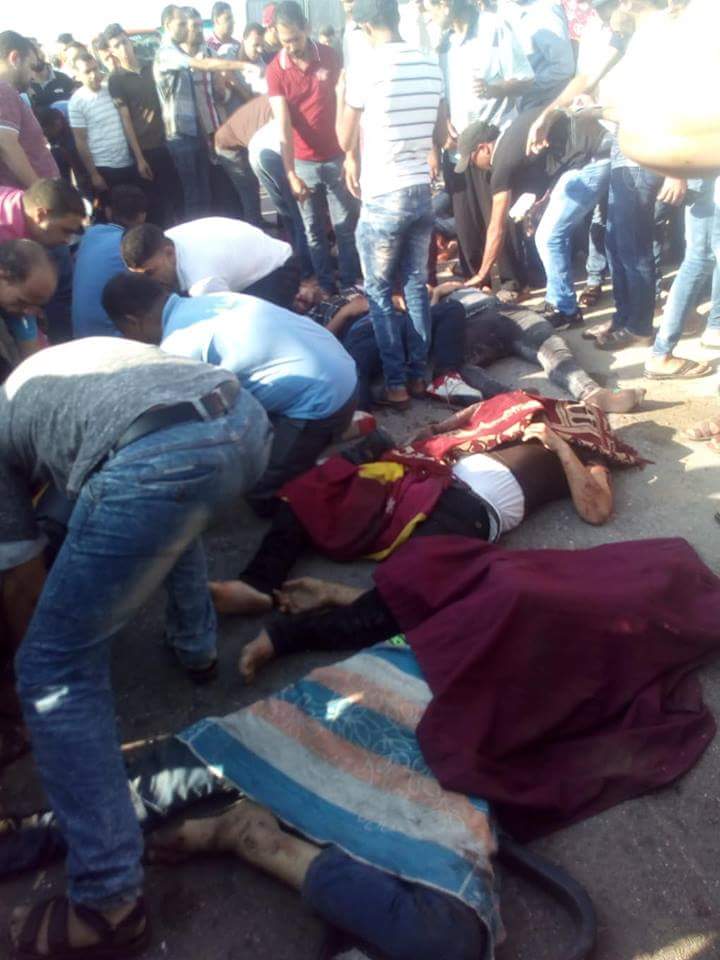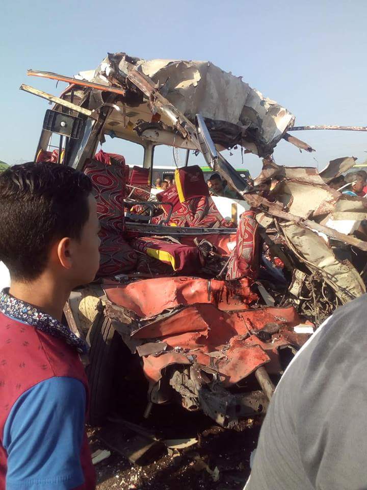 وذلك نتيجة تصادم أتوبيس رحلات دقهلية يحمل العاملين بمصانع الإستثمار ببورسعيد بسيارة وجميعهم من أبناء مدينة المطرية دقهلية .