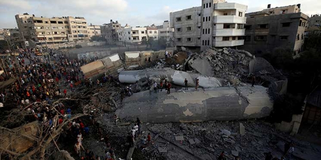 وأطلقت طائرات استطلاع إسرائيلية خمسة صواريخ تحذيرية على ما يبدو في محيط المبنى المكوّن من ست طبقات قبل أن تستهدفه طائرات حربيّة بصواريخ أدّت إلى تدميره كلّيًا وتسويته بالأرض.