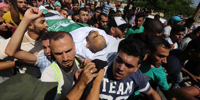 أما السيدة (أم رائد) عمّة الشهيد فقالت لـ”المركز الفلسطيني للإعلام”، إن فعاليات مسيرة العودة سلمية، لكن جنود الاحتلال يستغلون اقتراب الشبان من السلك الفاصل ويصوّبون الرصاص المتفجّر نحو أجسادهم.
