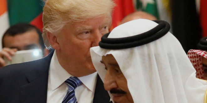 ودائما ما ينظر الرئيس الأمريكي للمال السعودي، ويطالب بدفع ثمن الحماية الأمريكية للنظام بالسعودية، حتى أنه وصفها بالبقرة الحلوب خلال حملته الانتخابية، كما أنه قال إن السعودية بلد ثري جدا وستعطي الولايات المتحدة بعضا من هذه الثروة، كما نأمل، في شكل وظائف وشراء المعدات العسكرية.