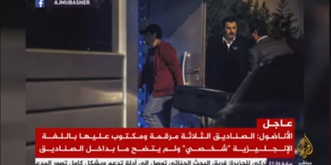 وقال مراسل الجزيرة: إنه جرى نقل الصناديق الثلاثة إلى داخل القنصلية، في حين بقيت السيارة تنتظر في الخارج، مضيفا أنه لاحظ وجود أضواء منارة في بعض غرف القنصلية في إسطنبول على الرغم من أنه يوم عطلة، مع دخول سيارة مظللة بدون أرقام إلى حرم القنصلية.