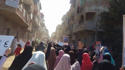وأعرب أبناء معتقلي منيا القمح بالعزيزية عن غضبهم إزاء الحكم العسكري بوقفة أمام مسجد الرسالة المحمدية بعد صلاة الجمعة رافعين صور ذويهم المعتقلين ولافتات مندده باعتقالهم مطالبين بالإفراج عنهم وسقوط الانقلاب