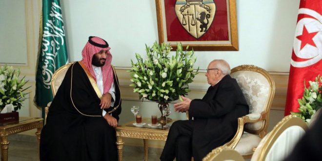 استعرض الرئيس التونسي الباجي قايد السبسي وولي العهد السعودي محمد بن سلمان، في العاصمة تونس مساء الثلاثاء، سبل التعاون بين البلدين.