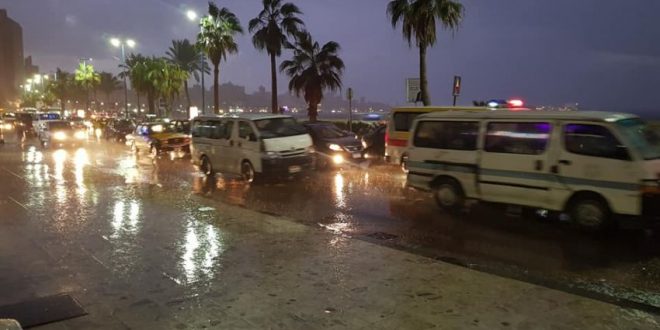 وأدت الأمطار المتواصلة إلى تراكمات المياه في عدد من شوارع المدينة الساحلية أعاقت حركة المرور والمشاة، فيما دفعت شركة الصرف الصحي بعدد من سيارات الكسح والبدلات لسحب المياه.