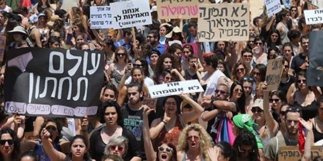 تظاهر حوالي 30 ألف شخص، معظمهم من النساء، مساء الثلاثاء، وسط مدينة تل أبيب، منددين بالعنف والجرائم بحق المرأة.