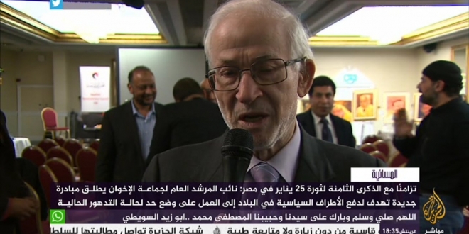 تزامنا مع الذكرى الثامنة لثورة 25 يناير أطلق إبراهيم منير نائب المرشد العام لجماعة الإخوان المسلمين، مبادرة سياسية جديدة تهدف إلى دفع الأطراف السياسية في البلاد إلى العمل على وضع حد لحالة التدهور السياسي الحالية.