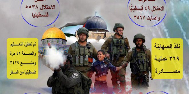 إنفوجراف.. اعتداءات الصهاينة على الفلسطينيين بالقدس والضفة الغربية في 2018
