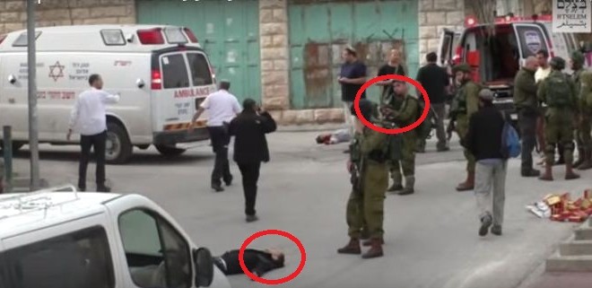 وظهر في الفيديو أحد الشابين الفلسطينيين ملقى على الأرض بلا حراك، وبدا أحد الجنود وهو يصوب سلاحه ويطلق رصاصة على رأس الفلسطيني الملقى على الأرض، واهتزت جثته بقوة وتدفقت الدماء من رأسه.