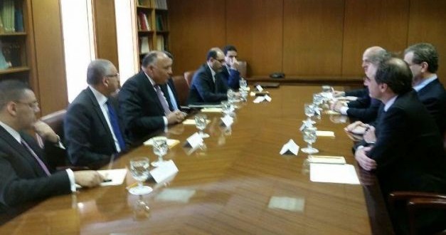 واستعرض شكرى خلال اللقاء الرؤية المصرية تجاه العديد من الأزمات التى تواجه منطقة الشرق الأوسط، وفى مقدمتها الأزمة السورية، والوضع فى ليبيا، وجهود مكافحة الإرهاب، بالإضافة إلى القضية الفلسطينية، فضلاً عن العلاقات المصرية الأمريكية.