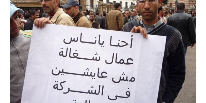 وقال: “هناك 26 احتجاجا عماليا خرجت ضد النقل والفصل التعسفي وقطع الأرزاق، حيث تشهد الدولة المصرية منذ 2011 حتى الآن إغلاق حوالي 7 آلاف مصنع وشركة تضم قرابة مليوني عامل، ومعاناة سوق العمل المصرية من كساد تام في قطاعات مثل الغزل والنسيج والسياحة وغيرها من المجالات، مما يجعل المطالب المتعلقة بالفصل وقطع الأرزاق سوف تتفاقم خلال الفترة القادمة، ناهيك عما تحدثه تلك الانتهاكات من خلل كامل في نظام الدخل الفردي والقومي، وما تنتجه عمليات غلق المصانع والشركات ليس فقط كخسارة على مئات الآلاف من العمال وأسرهم، بل أيضا في أحجام رأس المال المستثمر وحجم إنتاجية السوق المصري، والاقتصاد المصري بشكل عام”.
