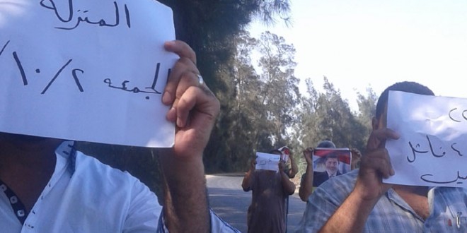 سلسلة مناهضة لحكم العسكر لشباب ضد الانقلاب بالمنزلة في جمعة ‫”الشعب يطارد الانقلاب‬”  رفعوا خلالها شارات رابعة وأعلام مصر وصور الكتور محمد مرسي .