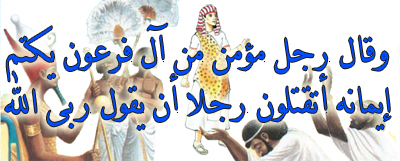 قال تعالي: ﴿وَقَالَ رَجُلٌ مُؤْمِنٌ مِنْ آَلِ فِرْعَوْنَ يَكْتُمُ إِيمَانَهُ أَتَقْتُلُونَ رَجُلًا أَنْ يَقُولَ رَبِّيَ اللَّهُ وَقَدْ جَاءَكُمْ بِالْبَيِّنَاتِ مِنْ رَبِّكُمْ وَإِنْ يَكُ كَاذِبًا فَعَلَيْهِ كَذِبُهُ وَإِنْ يَكُ صَادِقًا يُصِبْكُمْ بَعْضُ الَّذِي يَعِدُكُمْ إِنَّ اللَّهَ لَا يَهْدِي مَنْ هُوَ مُسْرِفٌ كَذَّابٌ * يَا قَوْمِ لَكُمُ الْمُلْكُ الْيَوْمَ ظَاهِرِينَ فِي الْأَرْضِ فَمَنْ يَنْصُرُنَا مِنْ بَأْسِ اللَّهِ إِنْ جَاءَنَا قَالَ فِرْعَوْنُ مَا أُرِيكُمْ إِلَّا مَا أَرَى وَمَا أَهْدِيكُمْ إِلَّا سَبِيلَ الرَّشَادِ * وَقَالَ الَّذِي آَمَنَ يَا قَوْمِ إِنِّي أَخَافُ عَلَيْكُمْ مِثْلَ يَوْمِ الْأَحْزَابِ * مِثْلَ دَأْبِ قَوْمِ نُوحٍ وَعَادٍ وَثَمُودَ وَالَّذِينَ مِنْ بَعْدِهِمْ وَمَا اللَّهُ يُرِيدُ ظُلْمًا لِلْعِبَادِ * وَيَا قَوْمِ إِنِّي أَخَافُ عَلَيْكُمْ يَوْمَ التَّنَادِ * يَوْمَ تُوَلُّونَ مُدْبِرِينَ مَا لَكُمْ مِنَ اللَّهِ مِنْ عَاصِمٍ وَمَنْ يُضْلِلِ اللَّهُ فَمَا لَهُ مِنْ هَادٍ﴾ِ(غافر:28-33).