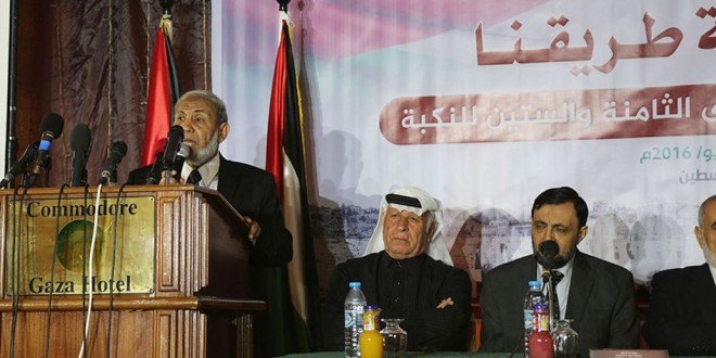 وقال: “يجب أن يعود اللاجئين الفلسطينيين إلى أراضيهم وأن تتحرر فلسطين كاملة”. وأكّد المقرئ، أنّ وحدة الفلسطينيين ومقاومتهم هي الضامن الحقيقي لعودتهم.
