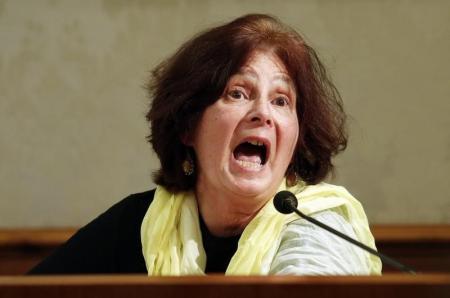 باولا ريجيني والدة الباحث الايطالي القتيل اثناء مؤتمر صحفي في البرلمان الايطالي في روما يوم الثلاثاء. تصوير: ريمو كاسيلي - رويترز.