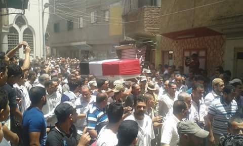 شيع الآلآف من أهالى قرية العزيزة التابعة لمركز المنزلة دقهلية جثمان الشهيد الجندى “محمود عادل طه ” ، والذى استشهد إثر إنفجار عبوتين ناسفتين على طريق شرق العريش صباح اليوم .
