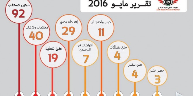 سجل “المرصد العربي لحرية الإعلام” في تقريره الأخير جملة انتهاكات قامت بها سلطات الانقلاب العسكري، خلال الـ15 شهرا الماضية فقط بحق الصحفيين والإعلاميين، منها “12 حالة حبس أو احتجاز، وسبعة انتهاكات في السجون، و37 بلاغا وجلسات محاكمة ضد صحفيين، و29 اعتداء بدنيا، و19 حالة منع تغطية، ومنع أربع مقالات من النشر، ومنع أربعة صحفيين من السفر ودخول البلاد”.