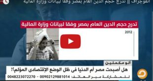 رصدت قناة “مكملين” ارتفاع الدين العام لمصر بصورة جنونية منذ وقوع الانقلاب العسكري. وأظهر مقطع “فيديو جراف” بثته القناة أن الدين العام في 2008 كان 624 مليار جنيه، وارتفع في 2009 إلى 705 مليار جنيه، وفي 2010 ارتفع إلى 810 مليار و535 مليون جنيه. وفي 2011 ارتفع الدين العام إلى …